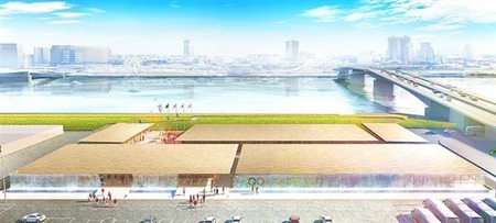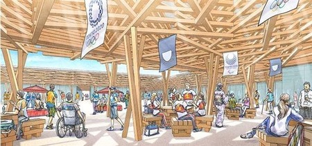 公募した木材が使用されるのは選手村の交流施設「ビレッジプラザ」。各国・地域の選手団が利用する飲食店やメディアセンターなどが設置される。敷地面積は1.3ヘクタールで、延べ床面積は約6000平方メートルの木造平屋建ての建物だ。調達する木材は約2000立方メートルと新国立競技場で使用されるのと同等の量となる。平成25年度に国が整備した公共建築物の木材使用量の3割に相当する。