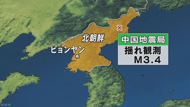 中国地震局が23日午後5時半ごろ北朝鮮北東部でマグニチュード3.4の揺れを観測したと伝えていますが、専門家によりますと、この揺れの規模は、これまで北朝鮮が行ってきた核実験と比べて大幅に小さくなっています。
