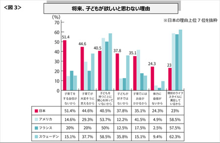 ・子どもを持つことに関心を持っていないから(日本40.5%)