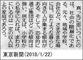 「例えば、小学校から私学に入れば、まわりにいるのは一定の収入以上の家庭であろう」。