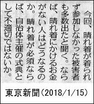 晴れ着が必須ならば、自治体主催の式典として不適切ではないか」。