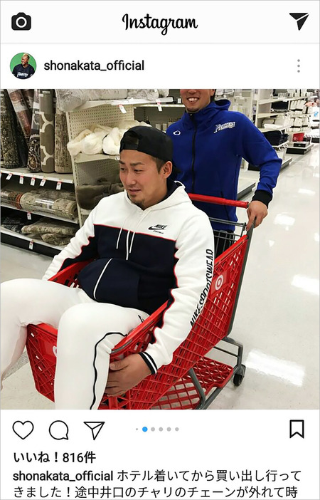 中田翔選手が掲載したのは、ショッピングセンターで商品用のカートに乗り、フロア内を走行して遊ぶという画像。まさに「炎上が約束された画像」であり、この画像を掲載すれば誰もが炎上するとわかるレベルのもの。