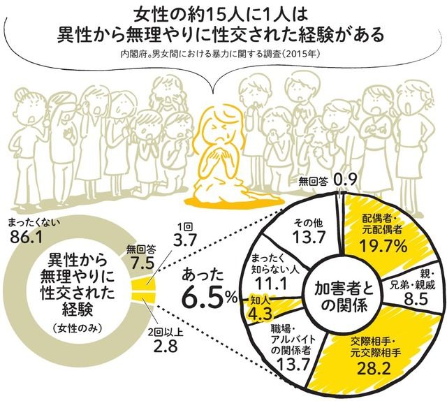 内閣府の調査では、女性の15人に1人が異性から無理やりに性交された経験があり、約4割が10代以下だった。若い世代が性暴力の被害者にも加害者にもならないためには、適切な性教育が欠かせない。