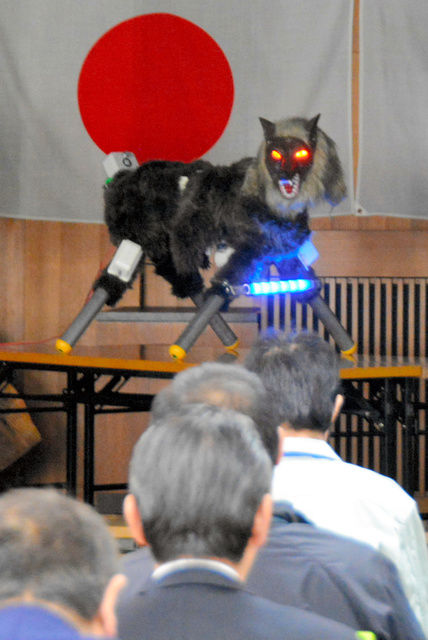 これに対し、同社の太田裕治社長は「ロボの前身として音と光だけの装置を7年前につくったが、慣れたという話はない。オオカミの姿に似せたことで、イノシシなどに『天敵がいる』とすり込ませることもできる」と反論する。