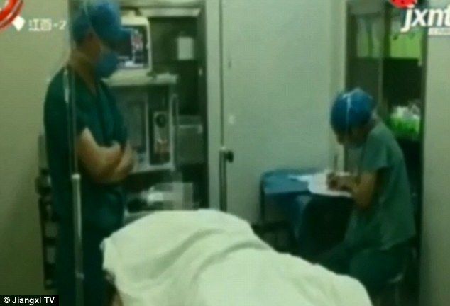 'We were arguing and I didn't notice she was holding a pair of scissors,' said Mr Li while lying on an operating table. He added that his fuming wife then lost control and aimed at his privates with the blades.