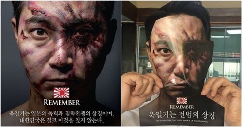 15年の経歴をもつデザイナーのソン・ウォンハクさんはこの日、ソーシャル・ネットワーキング・サービス(SNS)を中心に旭日旗が戦犯の象徴であることを広報するキャンペーンを行っている。モデルの顔に旭日旗形の傷を描いたポスターをオンラインに広めるのが今回のキャンペーンの核心だ。SNSの「認証ショット」文化をキャンペーンに組み合わせ、若い層の参加を誘導した。