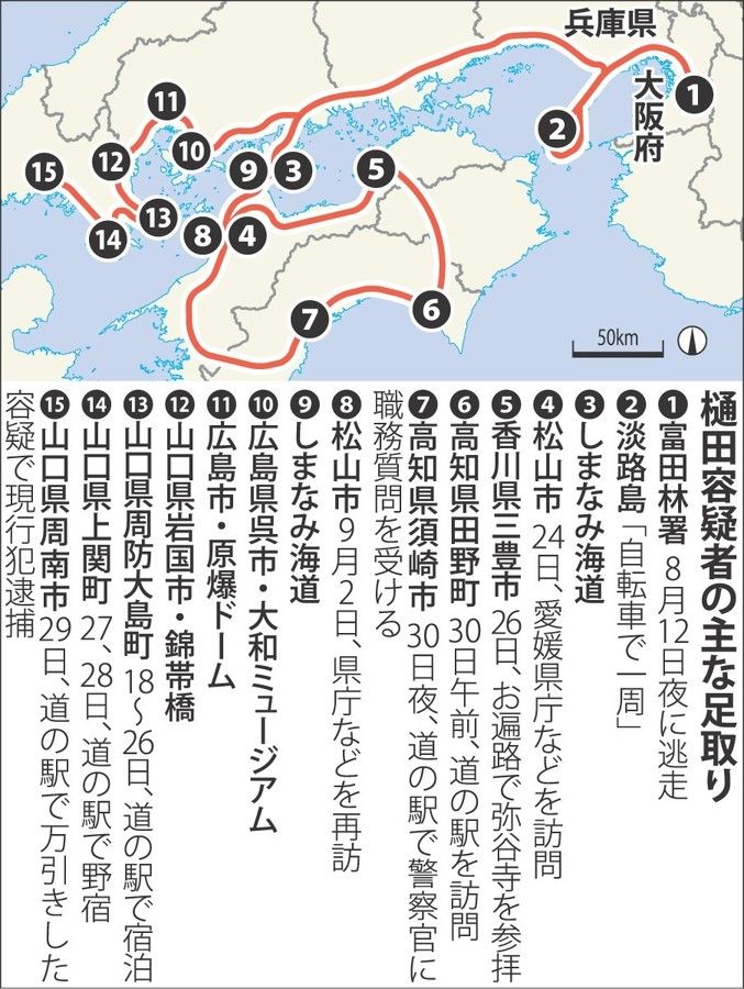 ◇「日本一周」は道半ば…大阪からの逃走ルート概要が明らかに