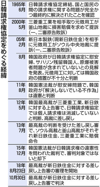 日本政府は一九六五年の日韓請求権協定で解決済みとの立場だが、判決では賠償命令が出る可能性が高いとみられ、日韓関係に大きな打撃を与えそうだ。
