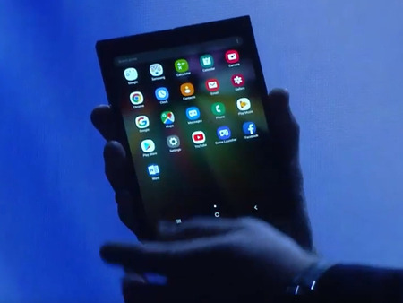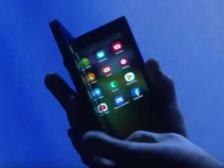 折りたたんで通常のスマートフォンのようにも使える。数カ月以内に量産を開始するという。