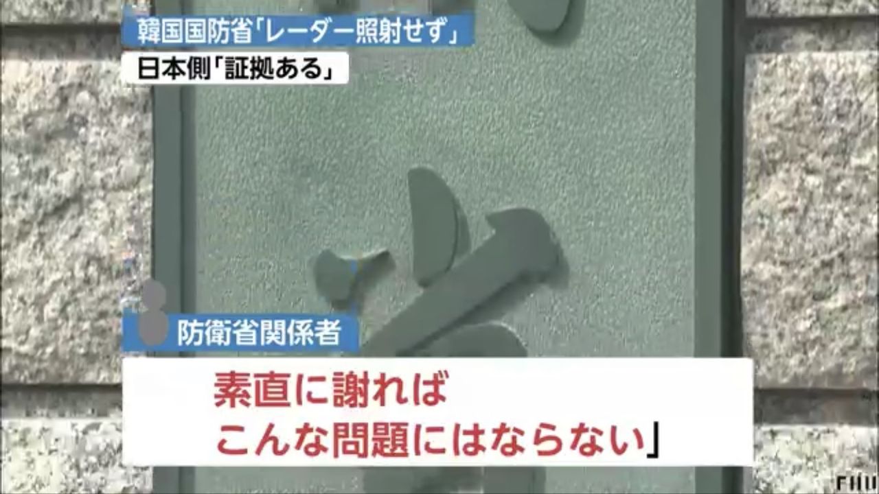 日本の防衛省関係者は、FNNの取材に対して、「われわれには、電波照射を受けたという証拠がある。素直に謝れば、こんな問題にはならない」としており、双方の主張は対立している。
