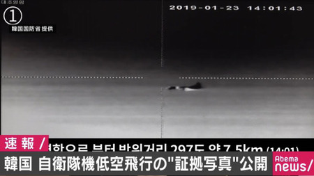 韓国国防省は24日夕方、「自衛隊機による低空威嚇飛行の証拠」とする写真を公開した。