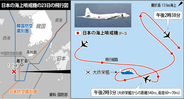 日本の海上哨戒機の23日の飛行図(資料:国防部)//ハンギョレ新聞社