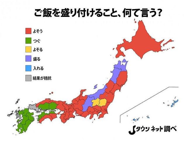 ご飯を盛り付ける時の表現に、地域差はあったのだろうか。