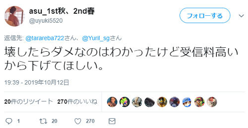 「壊したらダメなのはわかったけど受信料高いから下げてほしい」という受信料に対する問題が残っているという指摘もある。