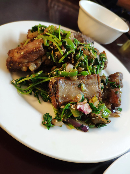 >タイムラインの炒飯テロがひどいのでワイも負けずに炒飯。18元です。真ん中にある青椒肉絲が信じられないくらい美味くておかわりした。これも18元。
