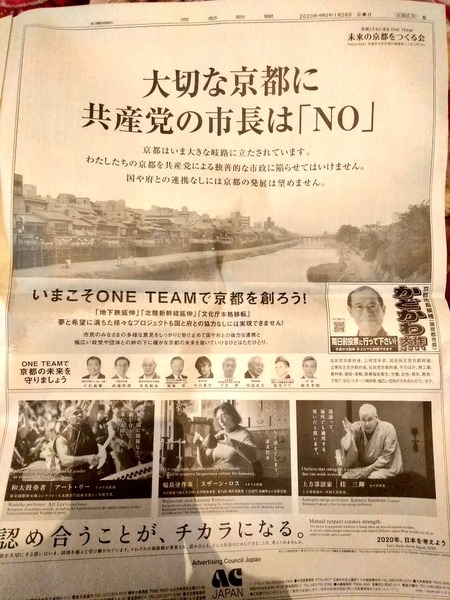 この広告に掲載されてた推薦人の一人が支持も許可もしてないのに勝手に載せられたとしてブログに声明出してんな