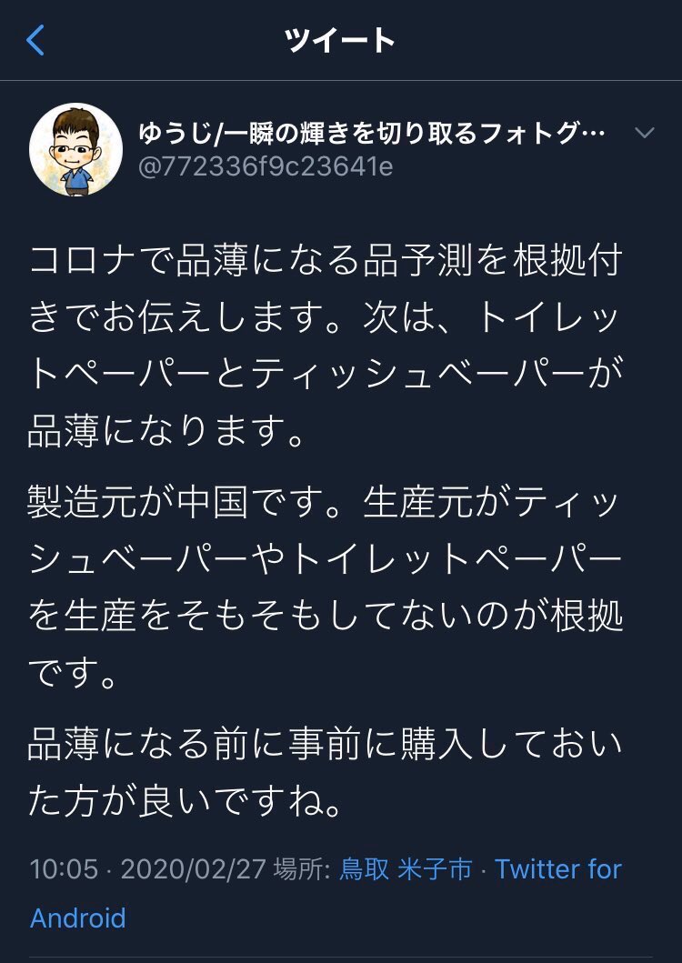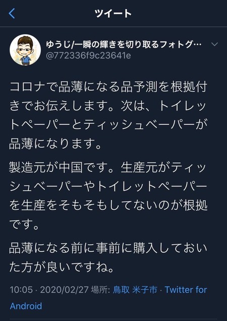 このデマで実際に品薄になったから予言は当たってるな