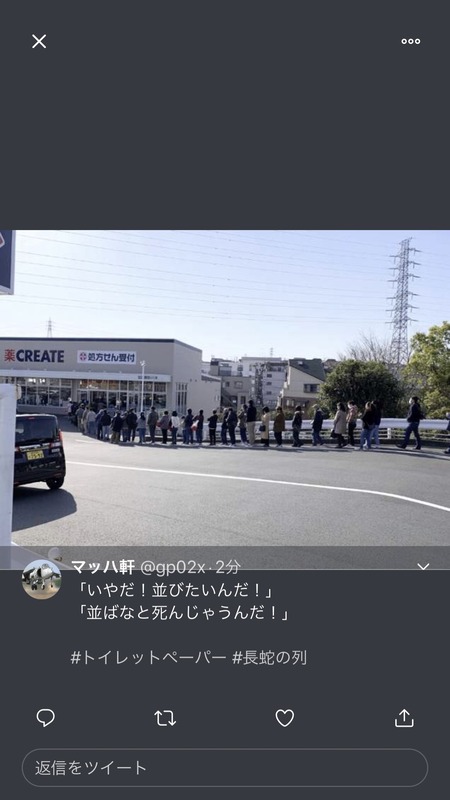 いつ行っても行列だしトイレットペーパーが爆売れ以外は普段の風景だな