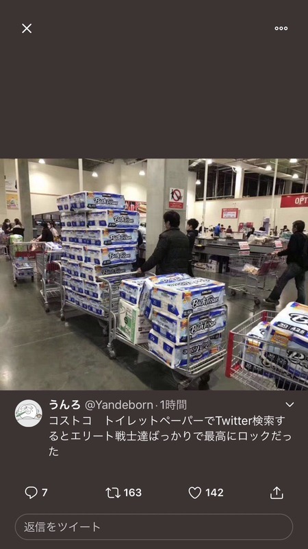 来週トイレットペーパー騒ぎが落ち着いたら、様子見ながら少しづつ買いだめしておくべき。