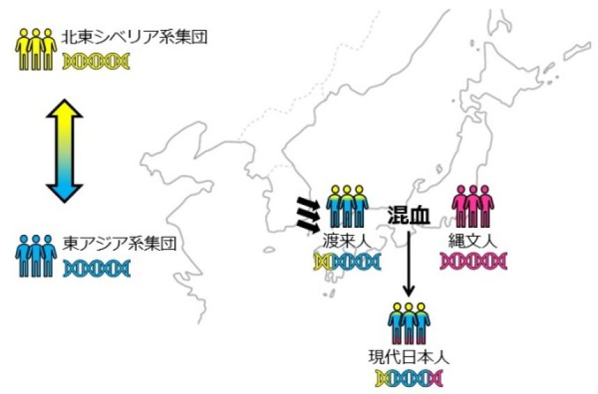 本土日本人(アイヌ・沖縄集団を除く。以下「日本人」)が縄文人と渡来人の混血集団の子孫であるという説は広く支持され、現代日本人のゲノムの8割以上を東アジア系と北東アジア系の成分が占めていることが知られていた。しかし、これらの成分を日本人がどのように獲得したのかについては十分に理解されていなかった。