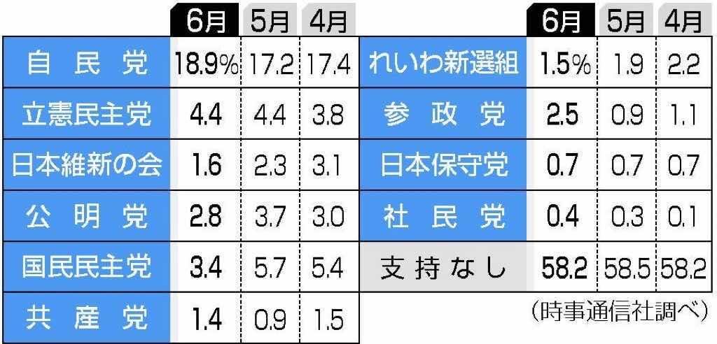 立憲共産含めたパヨクはいつも通りの支持率。これは日本に一定数寄生している売国奴の数が安定しているから。