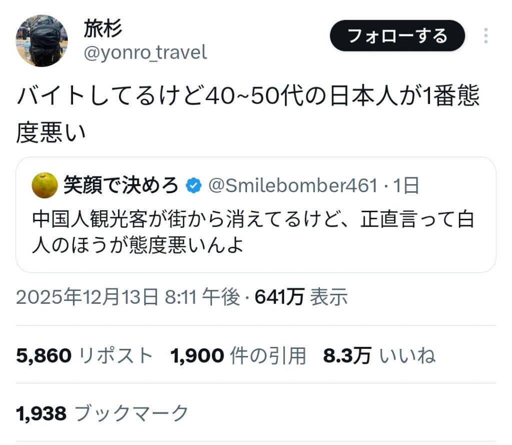 観光地で仕事してるけどジャップの民度も大概よ年齢なんて関係ない