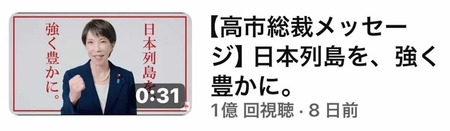 終盤を迎えた衆院選(8日投開票)では、各党がSNSを駆使し、動画で公約を訴えている。自民党が公示前日(1月26日)に公式ユーチューブで公開した「【高市総裁メッセージ】日本列島を、強く豊かに」は、4日に再生回数が1億回を突破。6日午前には1・3億回を超え、他党を圧倒的にリードしている。高市早苗首相を前面に出しての訴えが注目を集めている。