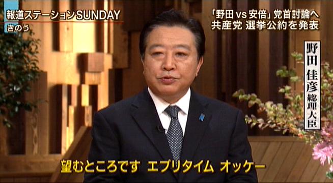 野田佳彦首相(民主党代表)は9日午後、長野県松本市内で演説し、こう訴えた。