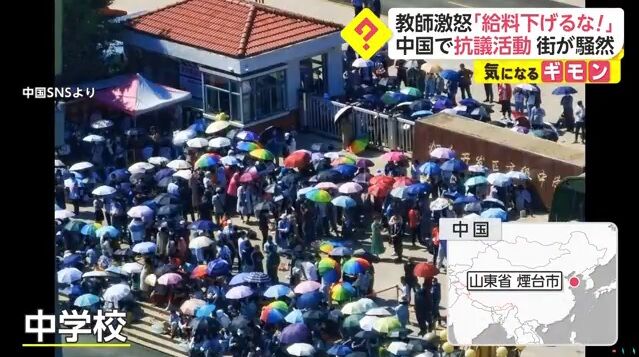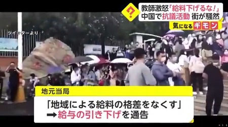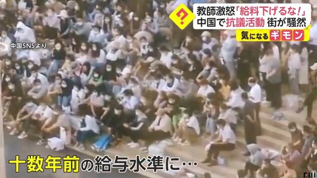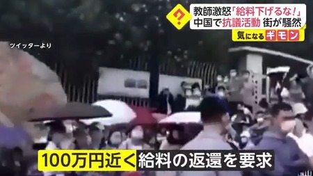 教師激怒「給料下げるな!」 中国で抗議活動 街が騒然