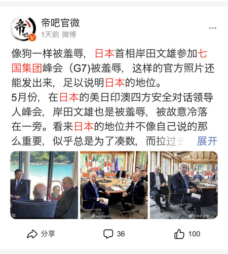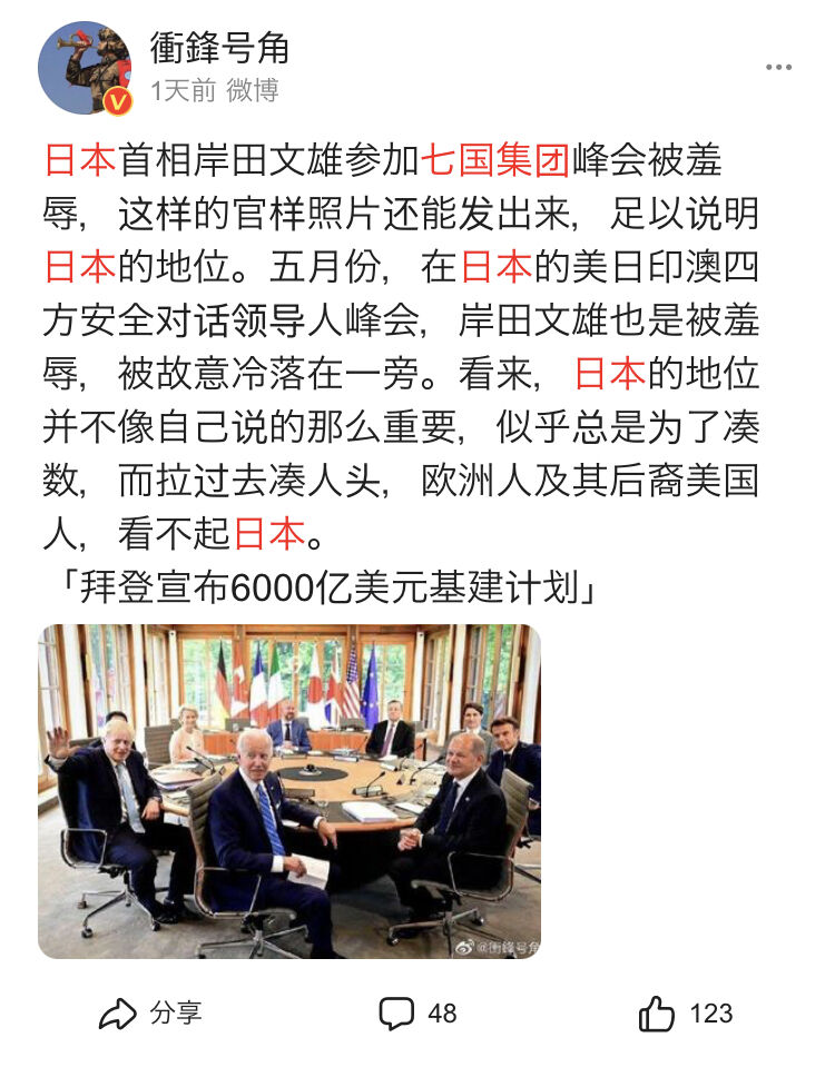 日本の動向について、国営新華社通信の電子版は「日本は常に米国のアジア太平洋における最も便利な子分だ。積極的に働くばかりか、やり方が露骨で、全世界に米国への忠誠心を示そうと躍起になっているようだ」と指摘。日米首脳会談やクアッド(日米とオーストラリア、インド4カ国の戦略対話)首脳会談に触れ、「日本が米国の手先になりたがっていることを全世界に示した」と述べた。