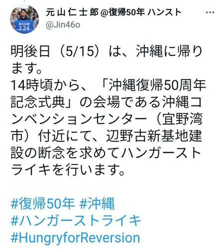 元 山 仁 士 郎 @復帰50年 ハンスト