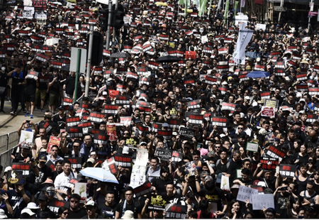 「逃亡犯条例」改正案に反対するデモ行進に若者たち約103万人(主催者発表)が参加。