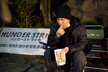 5市長に県民投票への参加を求めるハンガーストライキを始めてから60時間以上が経ち、医療関係者からの助言で塩を摂り始めました。
