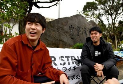 沖縄県名護市辺野古の新基地建設の賛否を問う県民投票に不参加を表明している5市に投票実施を求めようと、「『辺野古』県民投票の会」の元山仁士郎代表27は15日午前、宜野湾市役所前でハンガーストライキを始めた。