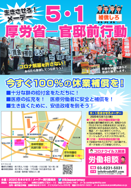 2020/05/01 5・1生きさせろ!メーデー 厚生労働省前―首相官邸前