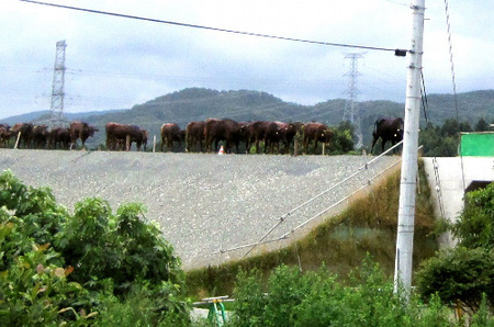 【画像】建設中の常磐道を歩く牛の群れ=7月22日午後0時48分
