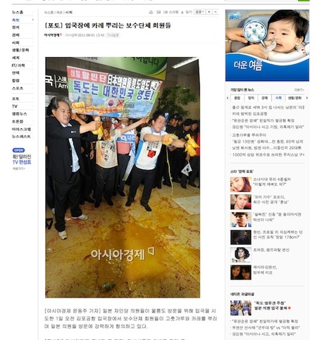 また、金浦空港では自民議員らの入国を拒否する市民団体が集結し、過激な抗議活動を繰り広げている。韓国メディアの報道に
